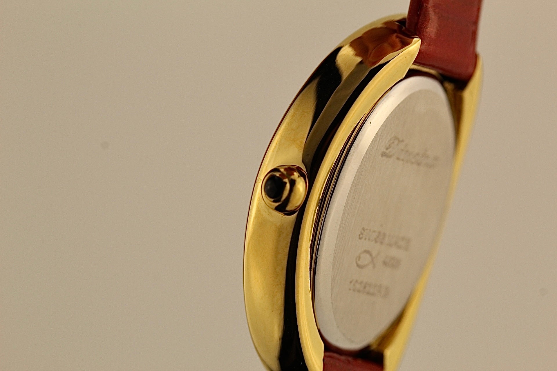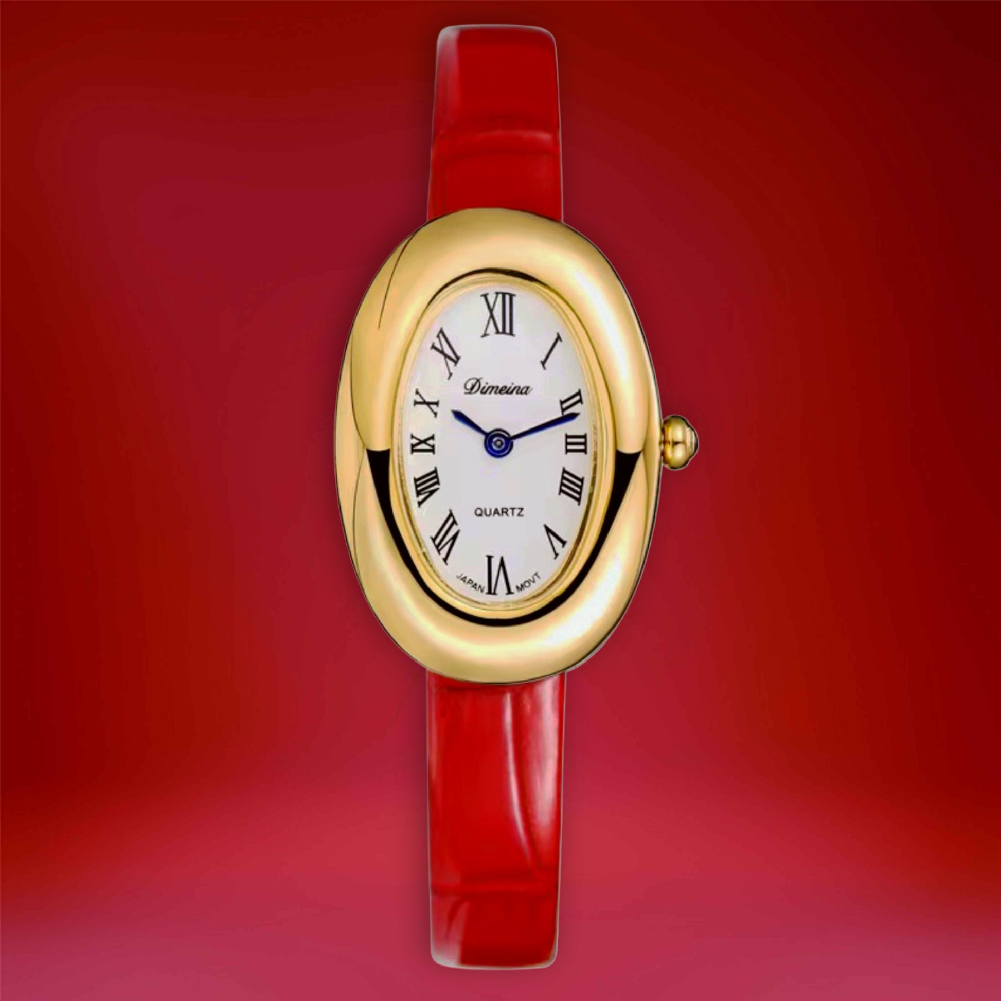 Expertly crafted from alloy, its unique gold-tone body and genuine leather strap with a distinct crocodile pattern offers both comfort and fashion-forward elegance. With precise Quartz movement, the Aly Watch is the ideal accessory for any event, elevating your ensemble with a highly luxurious and sophisticated touch.