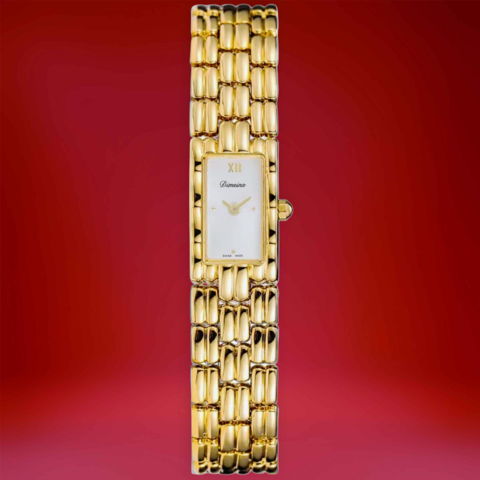 Crafted from durable stainless steel, The Grace Watch is designed for all-day comfort without compromising on style. The shimmering gold-tone bracelet, with its intricate interlocking links, offers a dainty and feminine touch, while the refined Roman numeral detail at 12 o’clock adds a subtle vintage flair.